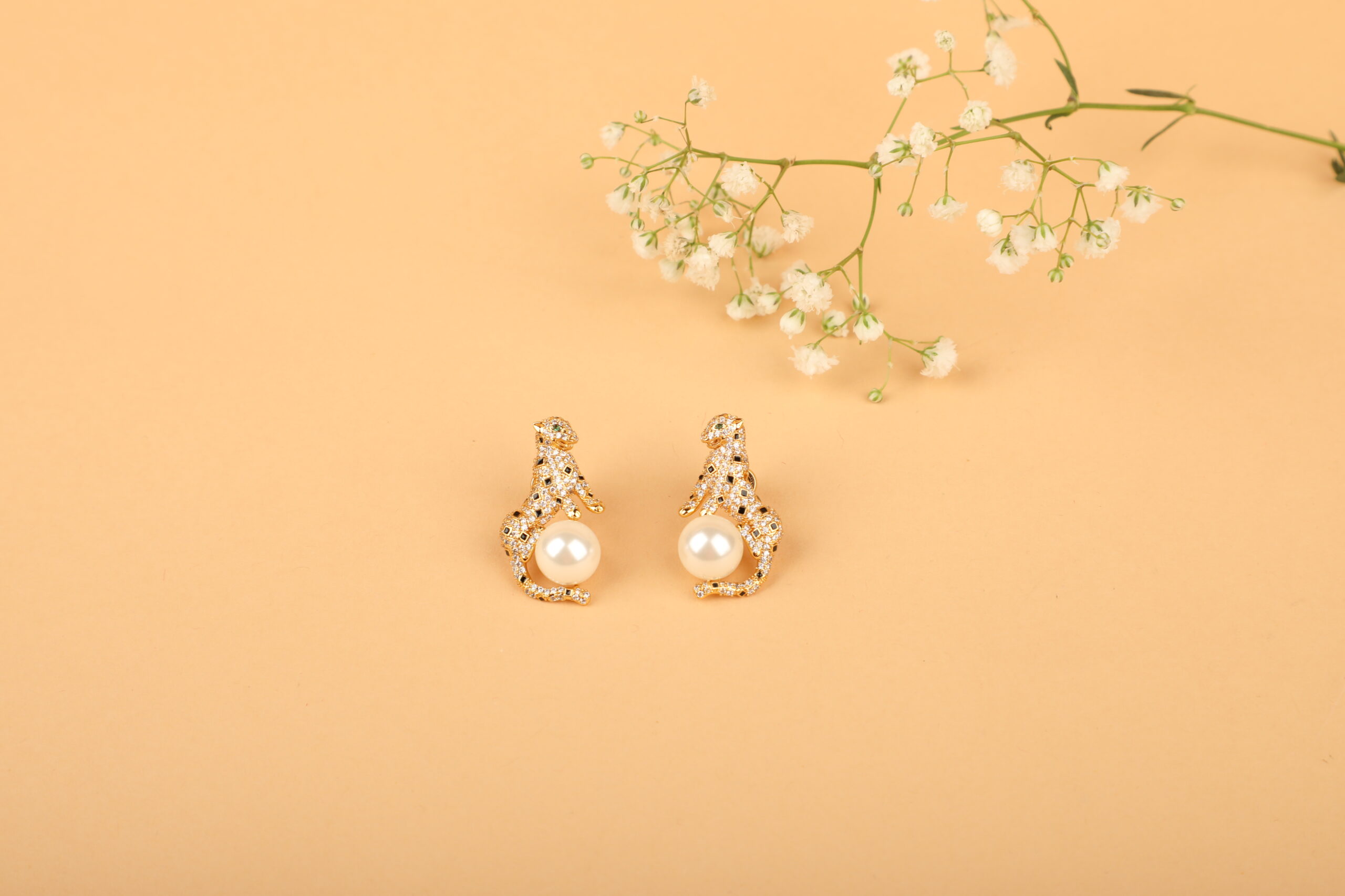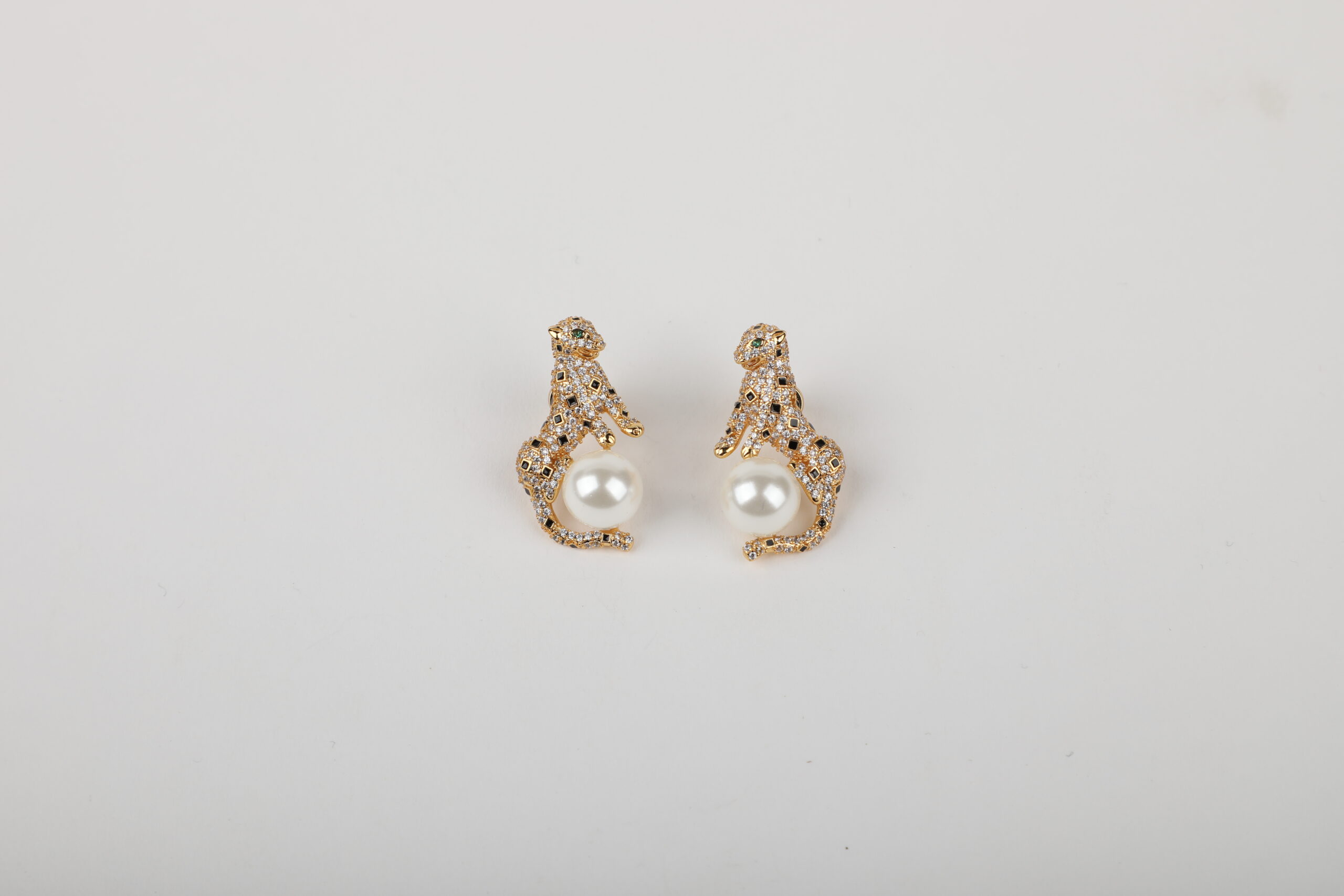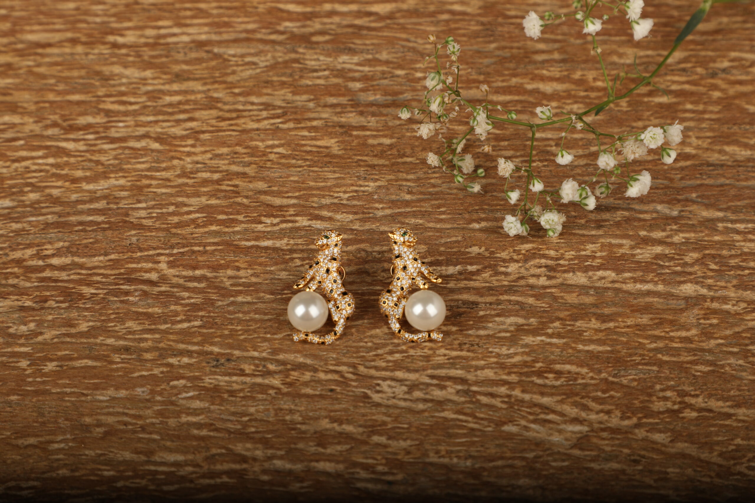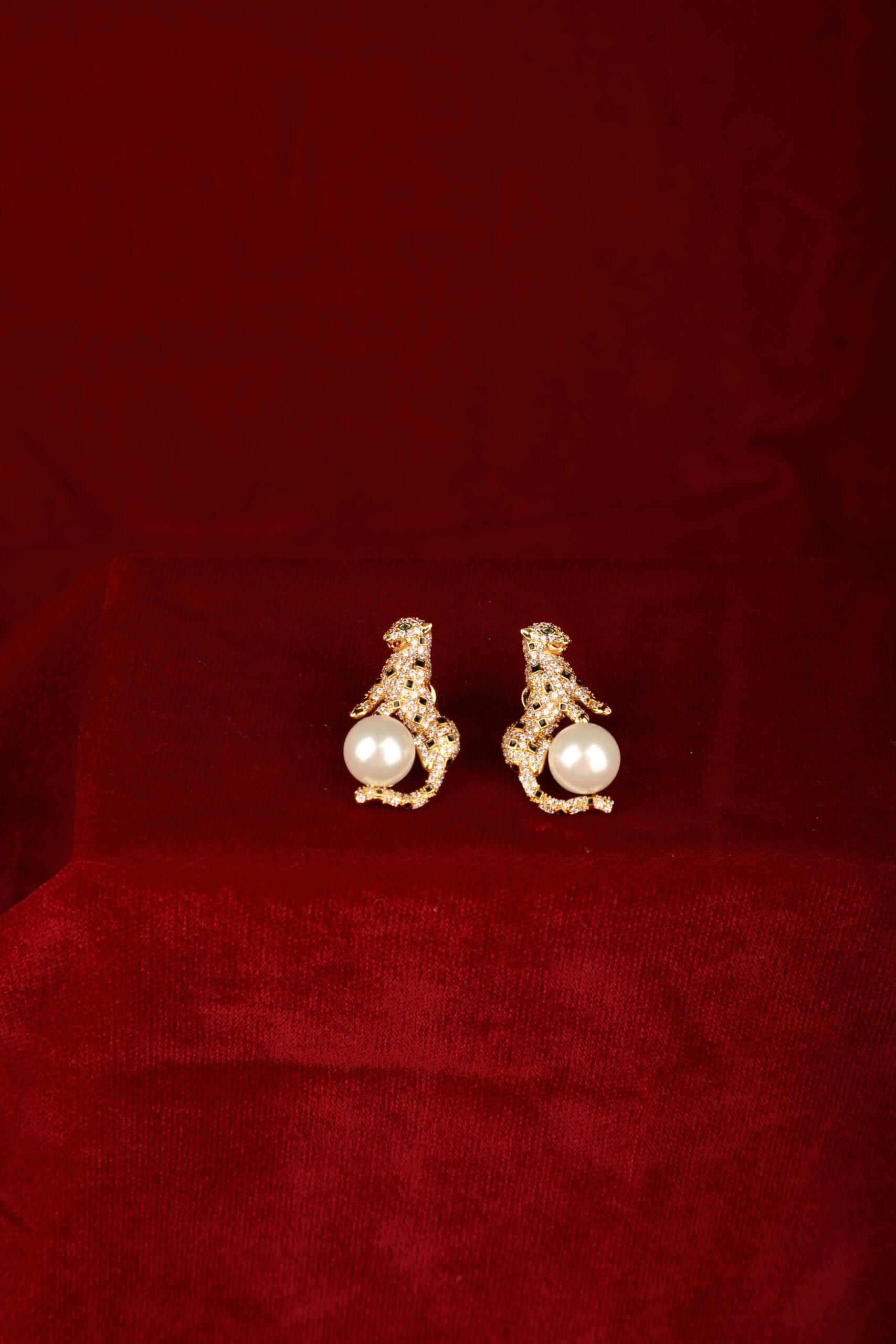 Make a bold yet elegant statement with these exquisite animal-inspired stud earrings. Designed in a rich gold-tone finish, the sculpted motif is intricately encrusted with fine crystal detailing, wrapping gracefully around a luminous pearl centerpiece. The contrast between the sparkling texture and the smooth pearl creates a striking balance of glamour and sophistication.