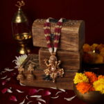 This statement set blends devotion with regal charm, making it a timeless addition to your ethnic jewellery collection.