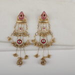 Add a graceful splash of colour to your festive wardrobe with these exquisitely handcrafted long earrings, designed to blend traditional artistry with fluid elegance. The earrings feature a teardrop-shaped stud adorned with soft pink enamel detailing and a ruby-toned accent, creating a refined and feminine appeal.