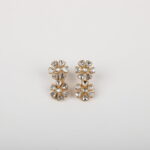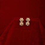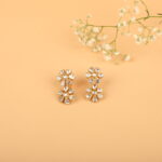 Delicate yet striking, these floral stud earrings are crafted with precision-set kundan stones arranged in a graceful double-flower silhouette. Each petal reflects light with a soft mirror-like sheen, while the gold-tone framework adds warmth and definition to the design. Lightweight and elegant, this pair brings a refined sparkle that feels timeless and versatile.