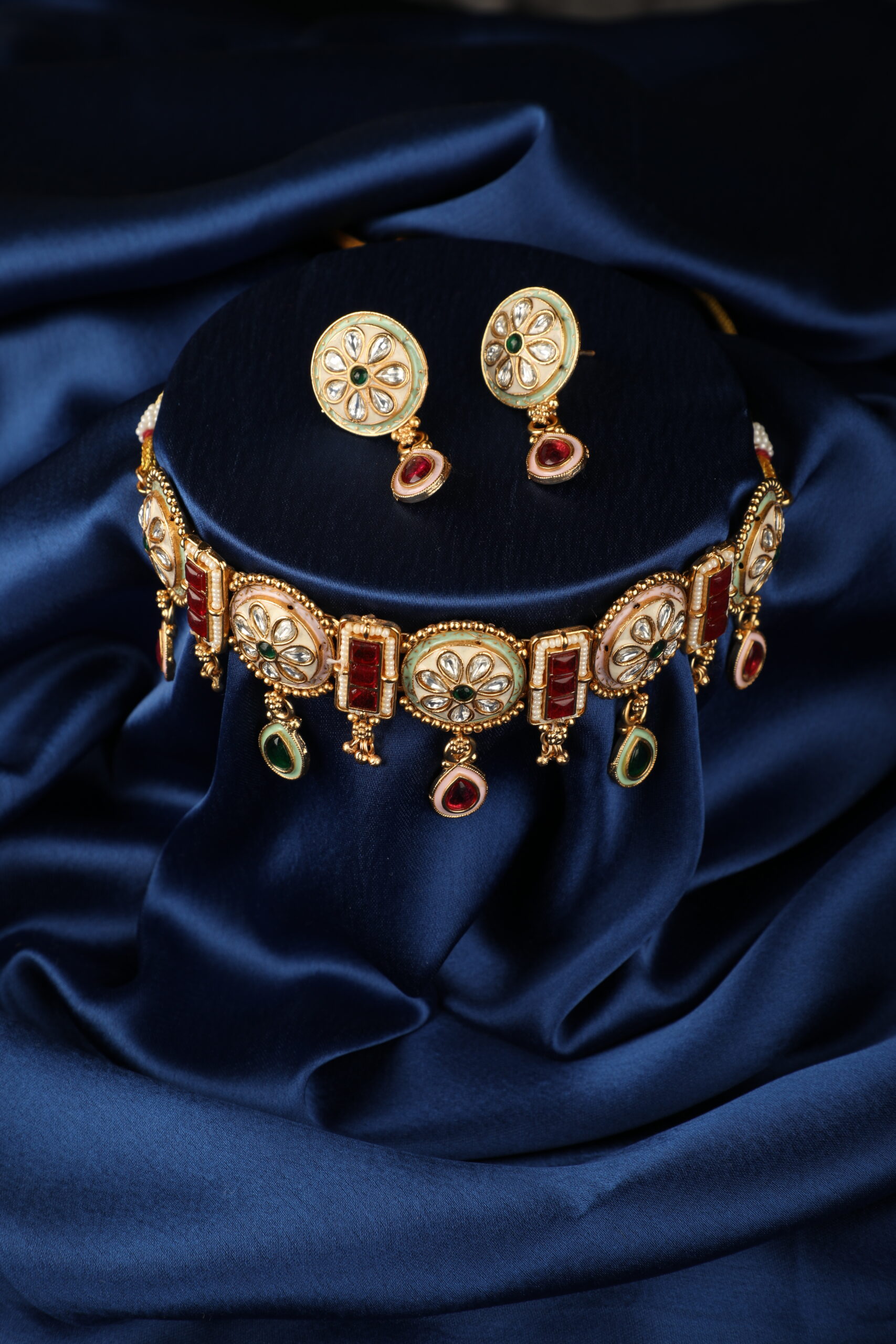 Designed to sit elegantly along the neckline, this choker set is timeless, versatile, and effortlessly regal.
