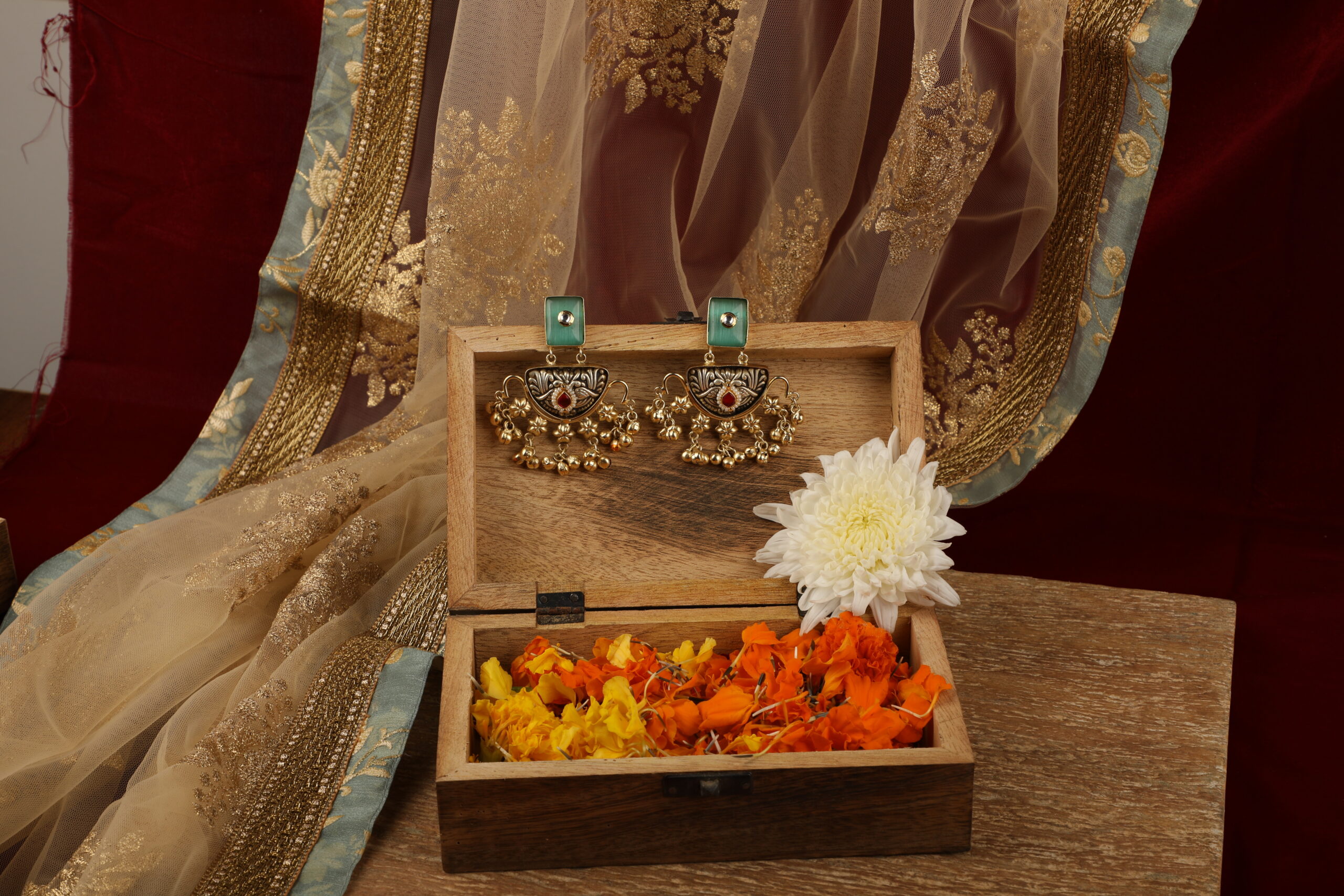 Pair these earrings with sarees, kurta sets, or contemporary ethnic silhouettes to add a refined statement touch.
